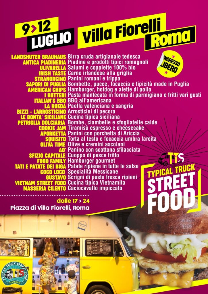 Dopo il grande successo dello scorso anno, e dopo aver lasciato alle spalle il lockdown, Ttsfood inaugura l’attesissimo tour 2020 partendo da villa Fiorelli. Finalmente si apre il sipario sulla più grande degustazione di cibo da strada della capitale. Lo spettacolo itinerante partirà da Piazza di Villa Fiorelli, tra la Tuscolana e la Casilina, a due passi da Porta Maggiore. Da Giovedì 9 a Domenica 12 Luglio, dalle ore 17 alle ore 24. Rispettando le regole di sicurezza e muniti di mascherine finalmente possiamo riaccendere il coloratissimo e gustosissimo tour Street Food targato TTS. Panini gourmet, primi piatti della tradizione e carni scelte cotte alla brace. Pizze, suppli e sfiziosi fritti da leccarsi i baffi. Pesce, focacce e bontà farcite in mille modi diversi. Dolci espressi e novità gastronomiche da perdere la testa. Colori, profumi e un po’ di magia trasformeranno l’intero quartiere nella capitale del divertimento “on the road”. Villa Fiorelli sarà solo la prima delle tappe romane. Dopo i successi della scorsa stagione, padelle, bracieri, Truck e stand cucina hanno già acceso fornelli e motori per travolgere di gusto, colori e profumi tutta Roma.