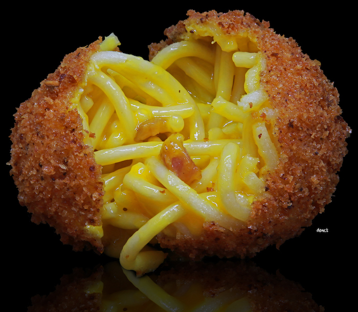 Supplì di pasta – Bonci: Gabriele Bonci è uno di quei personaggi che non ha bisogno di presentazioni. Ma se molti lo associano (quasi) esclusivamente alla pizza, in realtà il suo successo è stato decretato anche da altri street food di sua ideazione. Tra questi ci sono sicuramente i supplì di pasta che “stanno alla frittatina napoletana, come il supplì di riso sta all’arancino” secondo Bonci. Il supplì è uno scrigno che potenzialmente può celare qualsiasi tesoro, e in questo caso il contenuto è un ripieno di pasta di diversi formati. Talvolta c’è anche lo zampino di grandi chef, come l’ultimo uscito dai fornelli di Sarah Cicolini, il fritto agli ziti alla genovese.