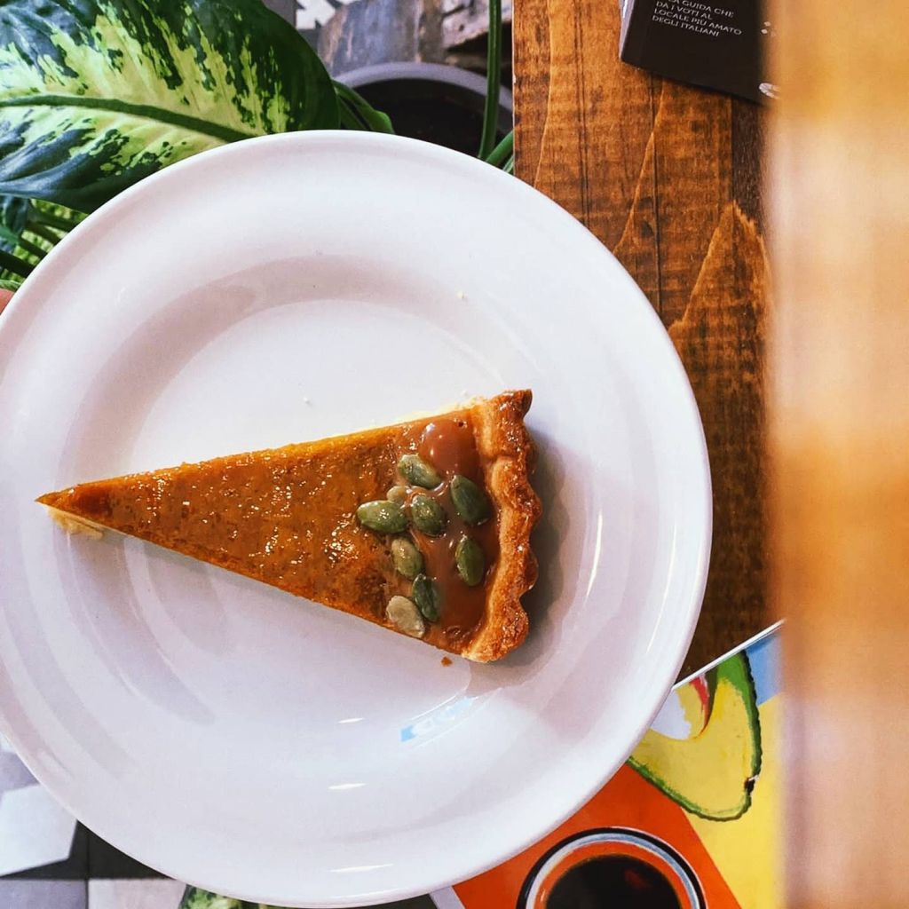 Infine non poteva mancare una delle soluzioni più golose per utilizzare la zucca, ossia la torta, anzi per precisione la tradizionale Pumpkin Cake americana. Quella servita in questo periodo da Faro Caffè Specialty a via Piave, poi, è una roba che crea davvero una dipendenza difficile da tenere a bada. In primis una pastafrolla bretone a mio avviso senza eguali, e poi la crema di zucca che la farcisce, leggermente aromatizzata con la cannella ed il caramello. A colazione, a merenda, sempre.