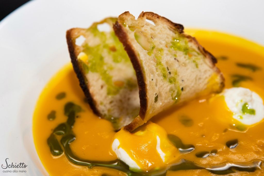 La vellutata di zucca, calda, morbida e dolce. Un sapore che recentemente che è stato riscoperto da Schietto, una nuova osteria di San Giovanni, dove la ripropongono in menu preparata con ingredienti semplici e genuini: zucca, olio evo Marulli (campione del mondo, sic!), formaggio caprino fresco, crostini ed erbette. Uno spettacolo, soprattutto a pranzo per chi vuole una cosa leggera, ma gustosa.