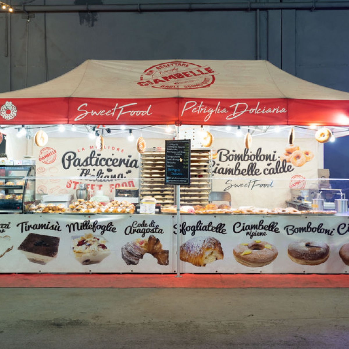 Siamo ormai in giro per le piazze d’Italia da circa dieci anni. Portiamo i sapori e le tradizioni della pasticceria romana, ma anche qualche ricetta napoletana avendo i nostri Zii pasticceri della provincia di Caserta.